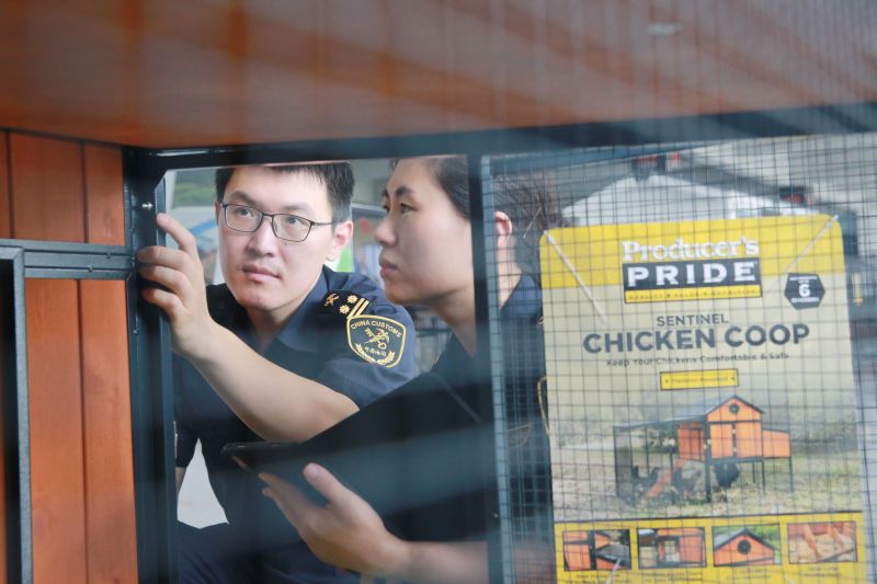 近日,日照捷杰科技制造有限公司裝卸倉庫一片繁忙景象,工人正在將他們的旗艦產(chǎn)品戶外雞屋打包分裝。經(jīng)青島海關(guān)所屬日照海關(guān)關(guān)員查檢合格后,這批雞屋隨后通過跨境電商渠道出口至歐洲。