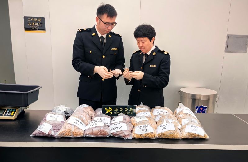 青島大港海關(guān)截獲違規(guī)攜帶入境植物種子26.4千克(圖)