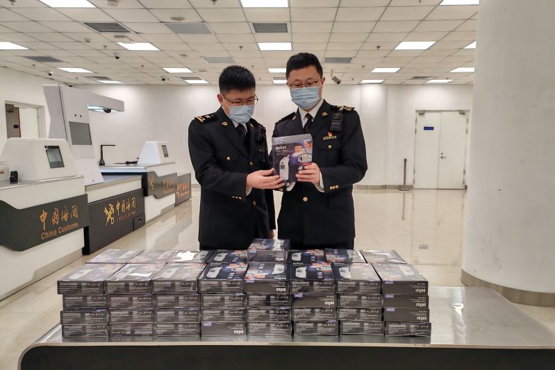 煙臺海關(guān)查獲違規(guī)攜帶進境紅外測溫槍66件(圖)