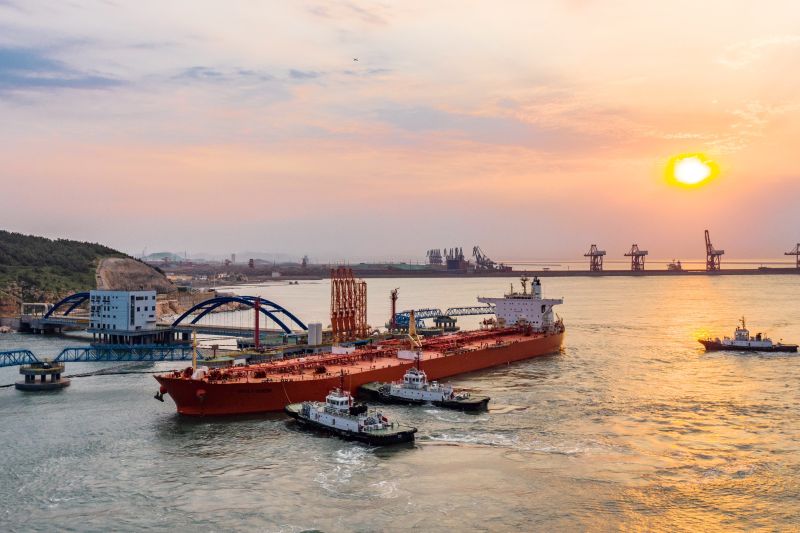 圖為:油輪在山東港口煙臺(tái)港接卸 冷紹冰/攝
