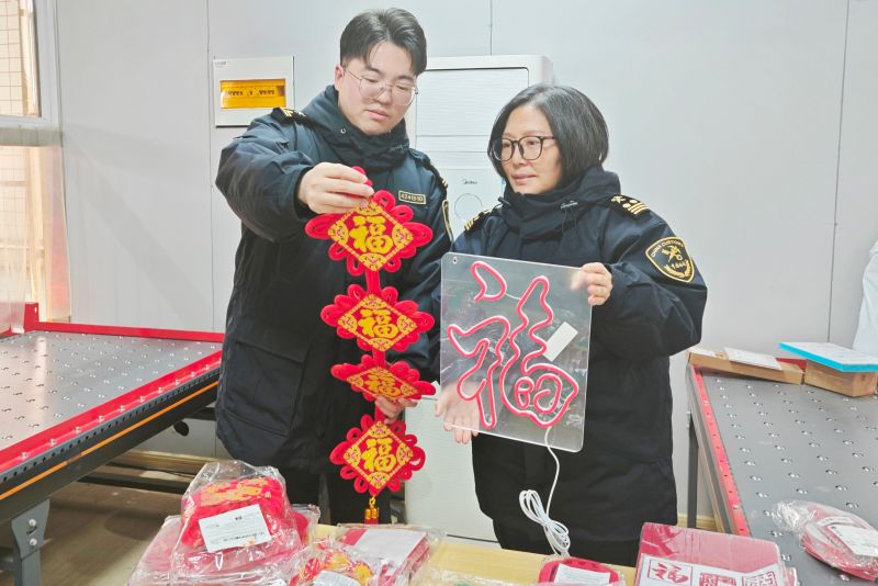 場所內,青島海關所屬煙臺海關關員孔祥旭和同事正在仔細核對一批即將啟運的集裝箱信息。箱內,紅彤彤的燈籠、精美的春聯(lián)、寓意吉祥的年畫等“國潮年貨”碼放整齊,散發(fā)著濃濃的中國年味。“這批貨物將直接搭乘‘海藍鯨’號班輪發(fā)運到韓國,再經韓國中轉發(fā)往世界各地?!笨紫樾窠榻B,連日來,承載著中華傳統(tǒng)文化的年貨正通過跨境電商的“快車道”,加速涌向海外市場。